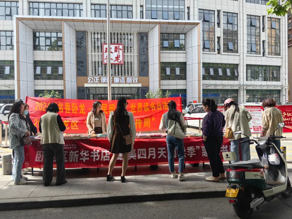 在“4?23”第29个世界读书日到来之际,卧龙区在区政务服务中心门口组织开展全民阅读活动。